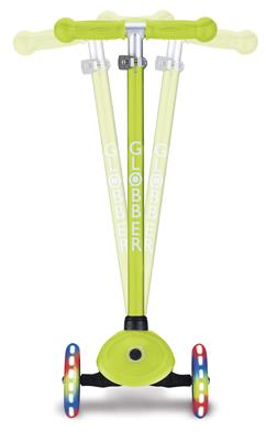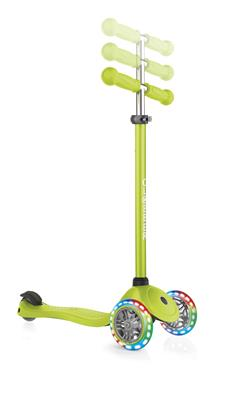 El patinete para niños Primo Lights , fabricado por Globber, está diseñado para ofrecer a los patinadores más pequeños una primera experiencia con patinetes extraordinaria. Todas las partes han sido cuidadosamente diseñadas para garantizar una experiencia segura y divertida. Gracias a su base baja es muy fácil montarse en él y, además, ayuda a que tu hijo alcance velocidad más fácilmente al tener una altura de empuje reducida. La dirección de este patinete Globber puede fijarse con tan solo presionar un botón, por lo que resulta mucho más estable patinar en línea recta.