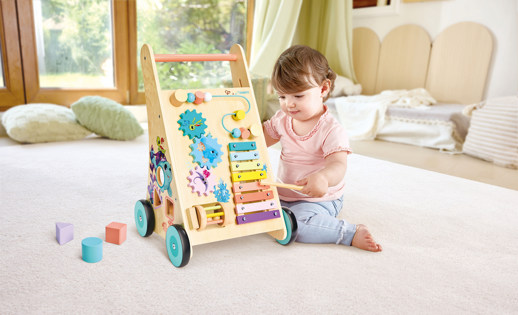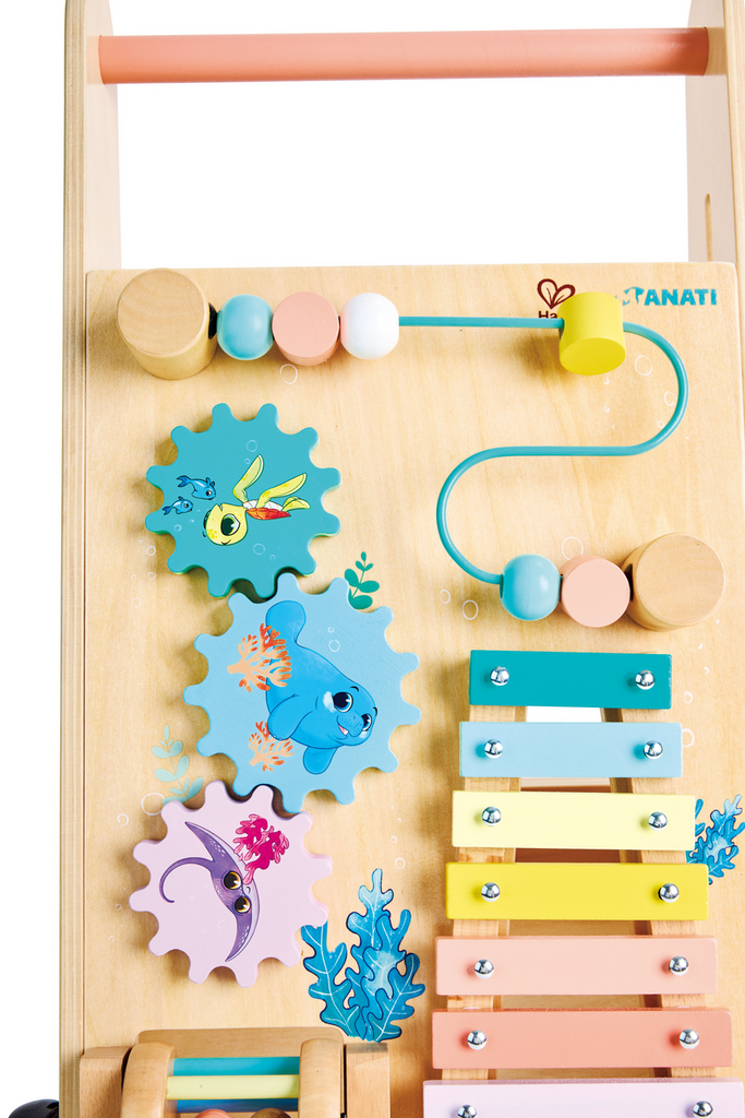Aprender a caminar es vital para su autonomía y, con este andador, también desarrollarán la motricidad fina. Cuando estén cansados de explorar su entorno, podrán jugar con las 6 actividades que contiene este completo andador para empezar a descubrir las leyes básicas de la mecánica y la física. Tienen muchos juegos y actividades para elegir: un looping, engranajes, un xilófono, tres encajables y un circuito vertical. ¡Se lo pasarán en grande jugando sin parar! Medidas: 50 cm x 10 cm x 30,5 cm.