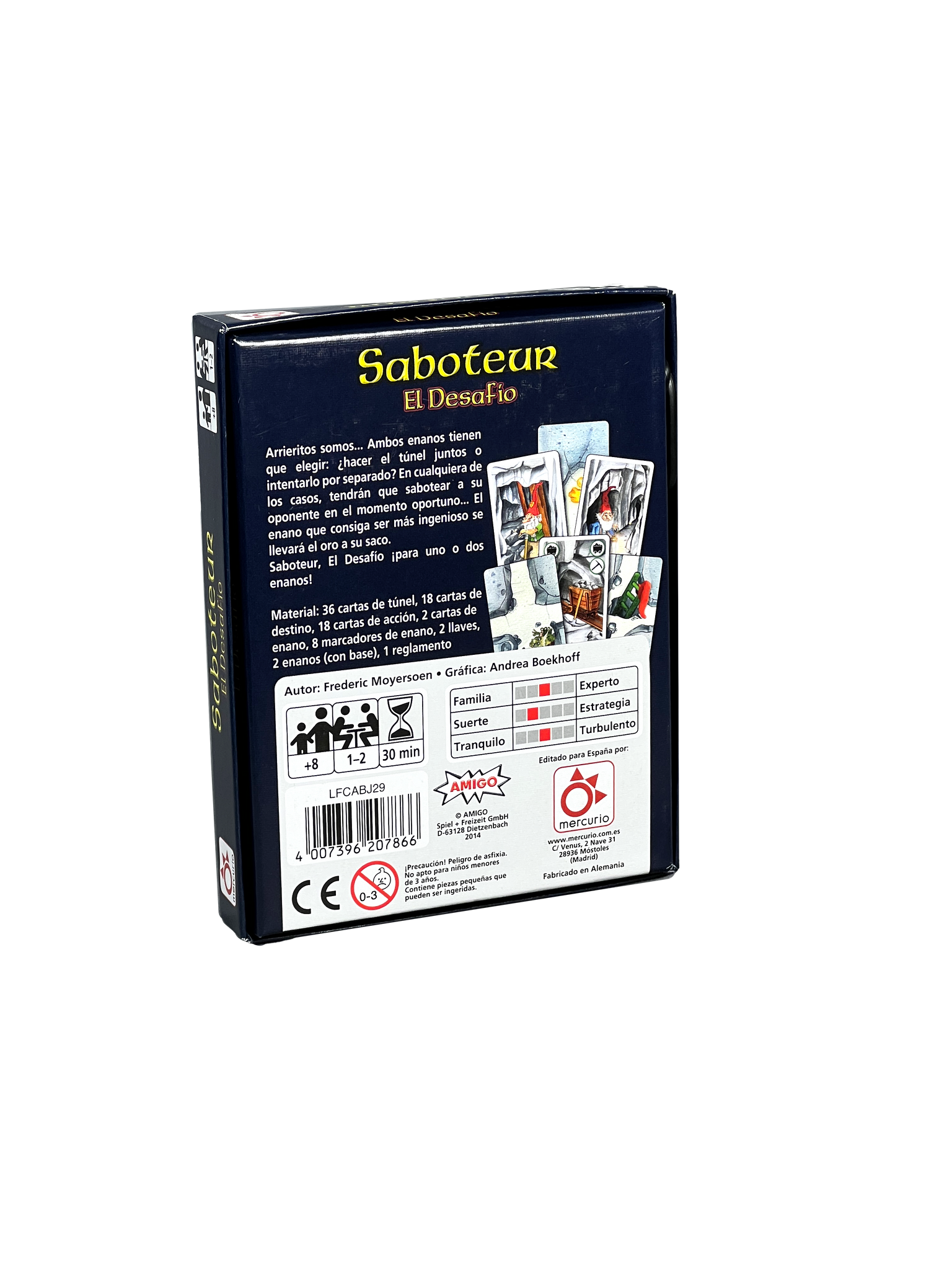 Ambos enanos tienen que elegir: ¿hacer el túnel juntos o intentarlo por separado? En cualquiera de los casos, tendrán que sabotear a su oponente en el momento oportuno. Jugar un pico roto, un derrumbe o una puerta cerrada... El enano más ingenioso ganará la ventaja crucial para llevarse el oro. El jugador que tenga más pepitas de oro después de tres rondas gana la partida.