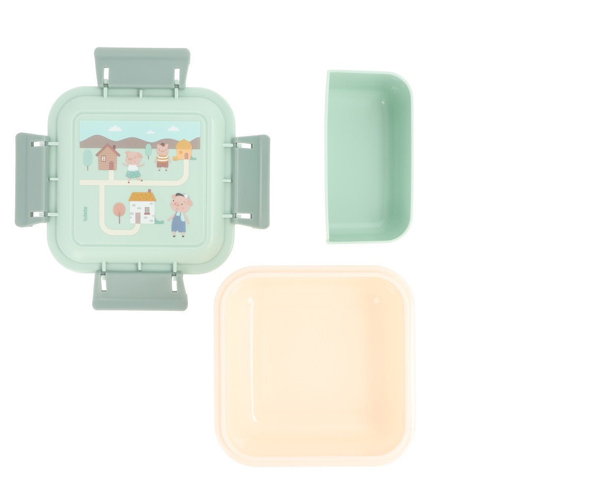 Caja de almuerzo grande decorada con Los Tres Cerditos. Práctica y resistente.