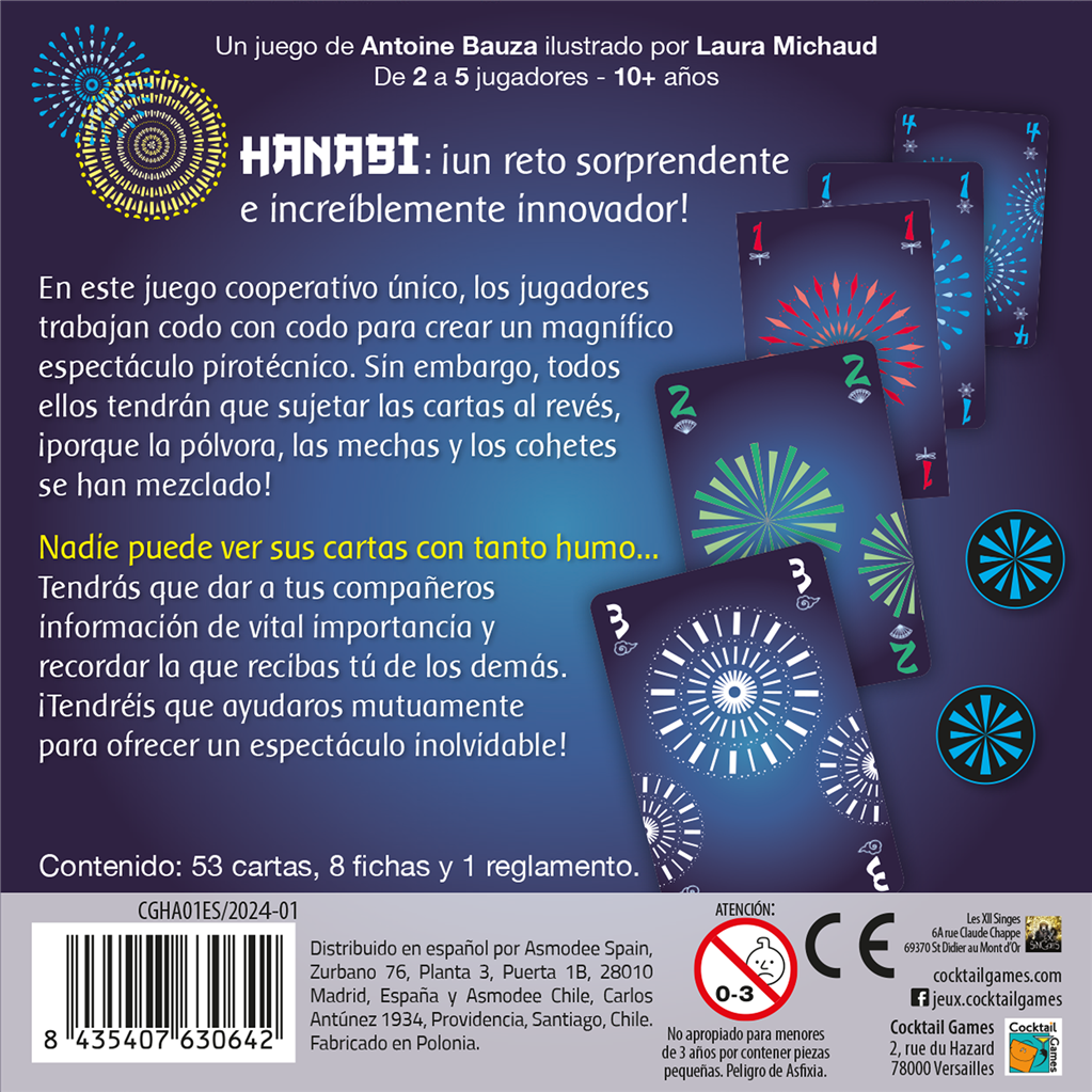En este juego cooperativo único, los jugadores trabajan codo con codo para crear un magnífico espectáculo pirotécnico. Sin embargo, todos ellos tendrán que sujetar las cartas al revés, ¡porque la pólvora, las mechas y los cohetes se han mezclado!